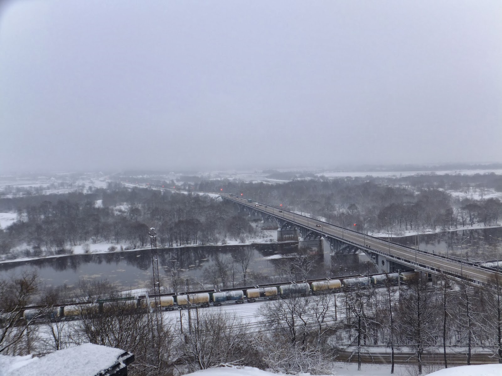 Snow! We finally had our first appreciable amount of snow here in Vladimir last Thursday. The snow melted within a few hours, but I snapped this picture on the way to the gym in the morning. You get a nice view of scary garage land and an industrial area off in the distance. The weather forecast is calling for warmer temperatures (upper 30s F) for the next week, so who knows when we'll see snow again. That's making everyone here nervous--usually there is snow on the ground by this time, and Russians love snow.